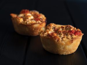 Dough (Wheat flour, Orange Juice, Water, Olive Oil, Sunflower Oil, White Vinegar, Baking powder, Salt,) Olives – Fresh Onions – Parsley – Fresh Koliandro.